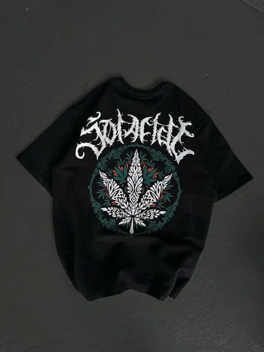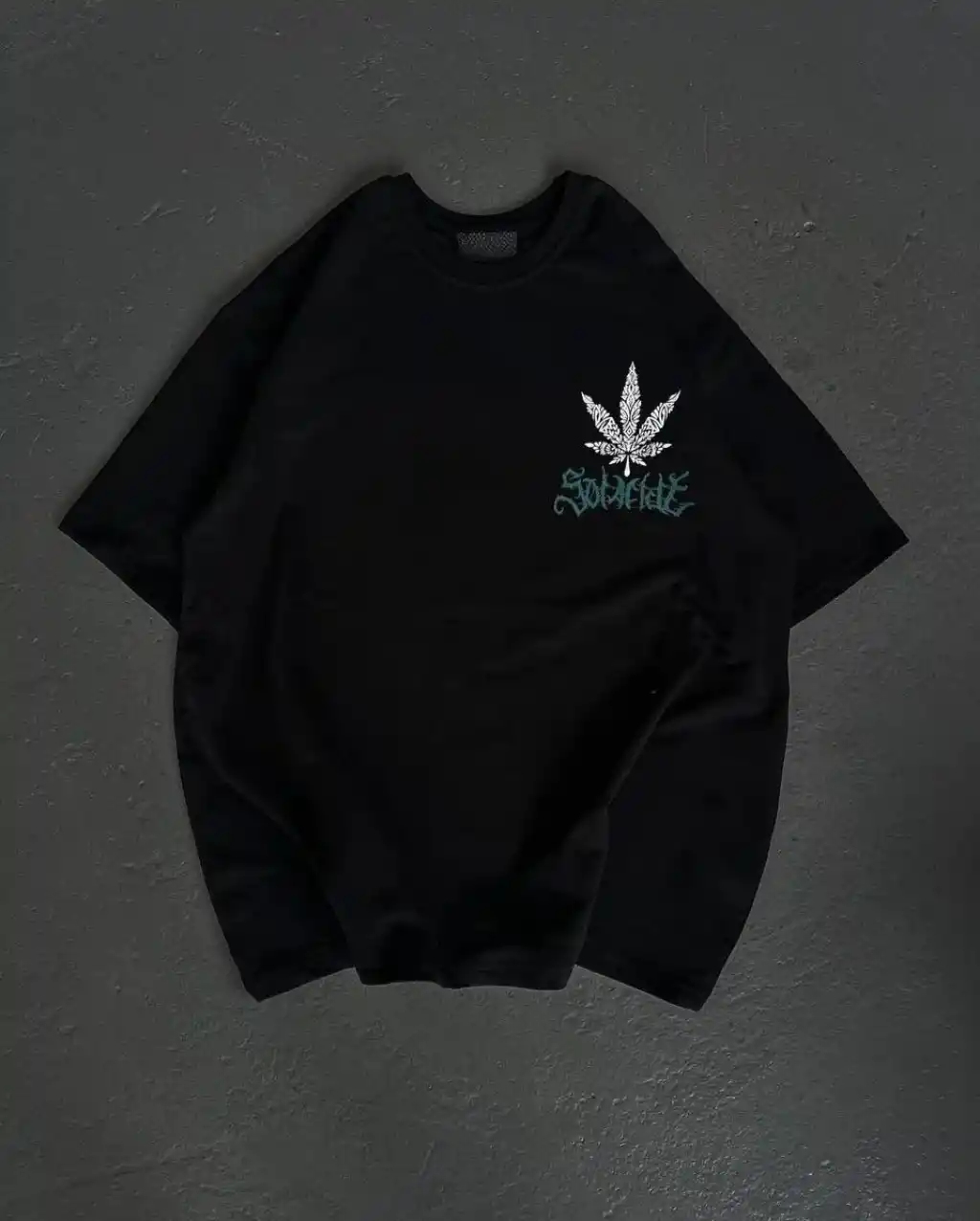 20/1 Penye Compack Day One Baskılı Oversize Bisiklet Yaka T-shirt - Siyah
