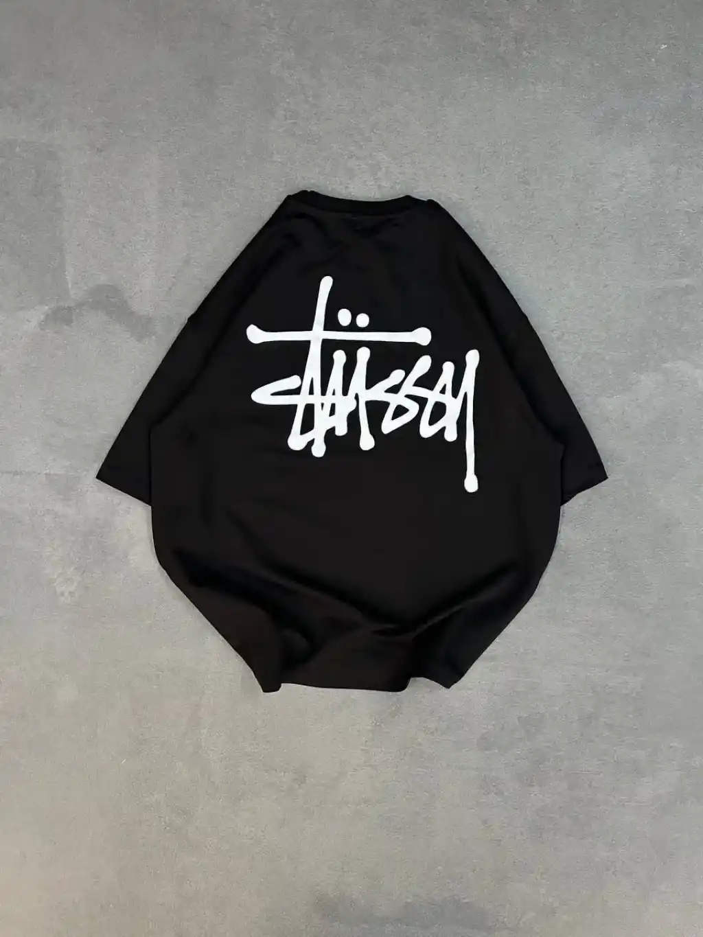 Benzersiz Sırt Baskılı Erkek Sokak Stili Bol Tişört - Nefes Alabilir Polyester, Makinede Yıkanabilir - Siyah