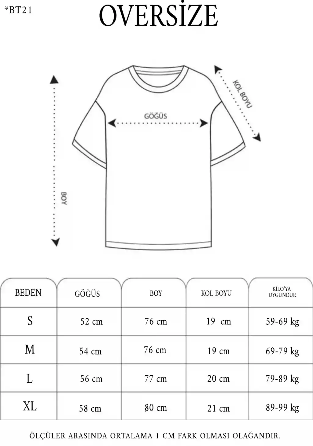 Unisex Bisiklet Yaka Baskılı Oversize T-Shirt - Siyah
