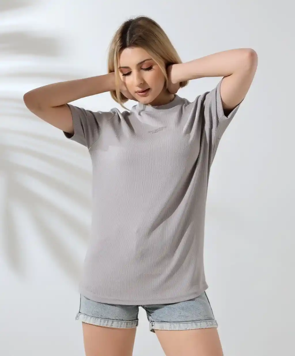Unisex Bisiklet Yaka Baskılı Slim Fit T-Shirt - Boyalı Gri