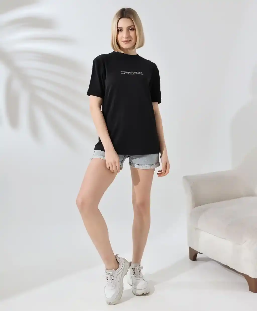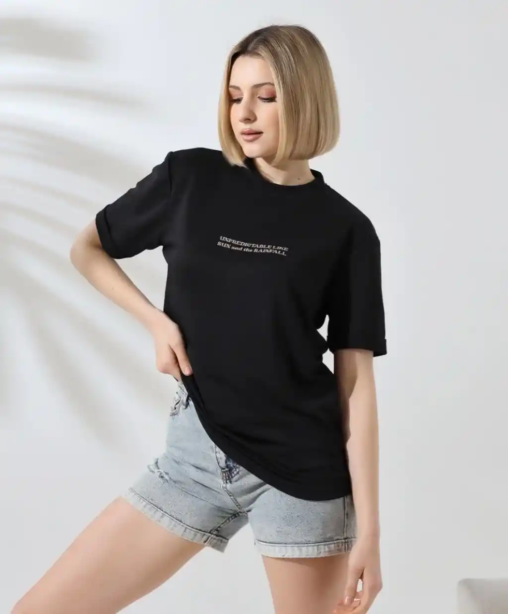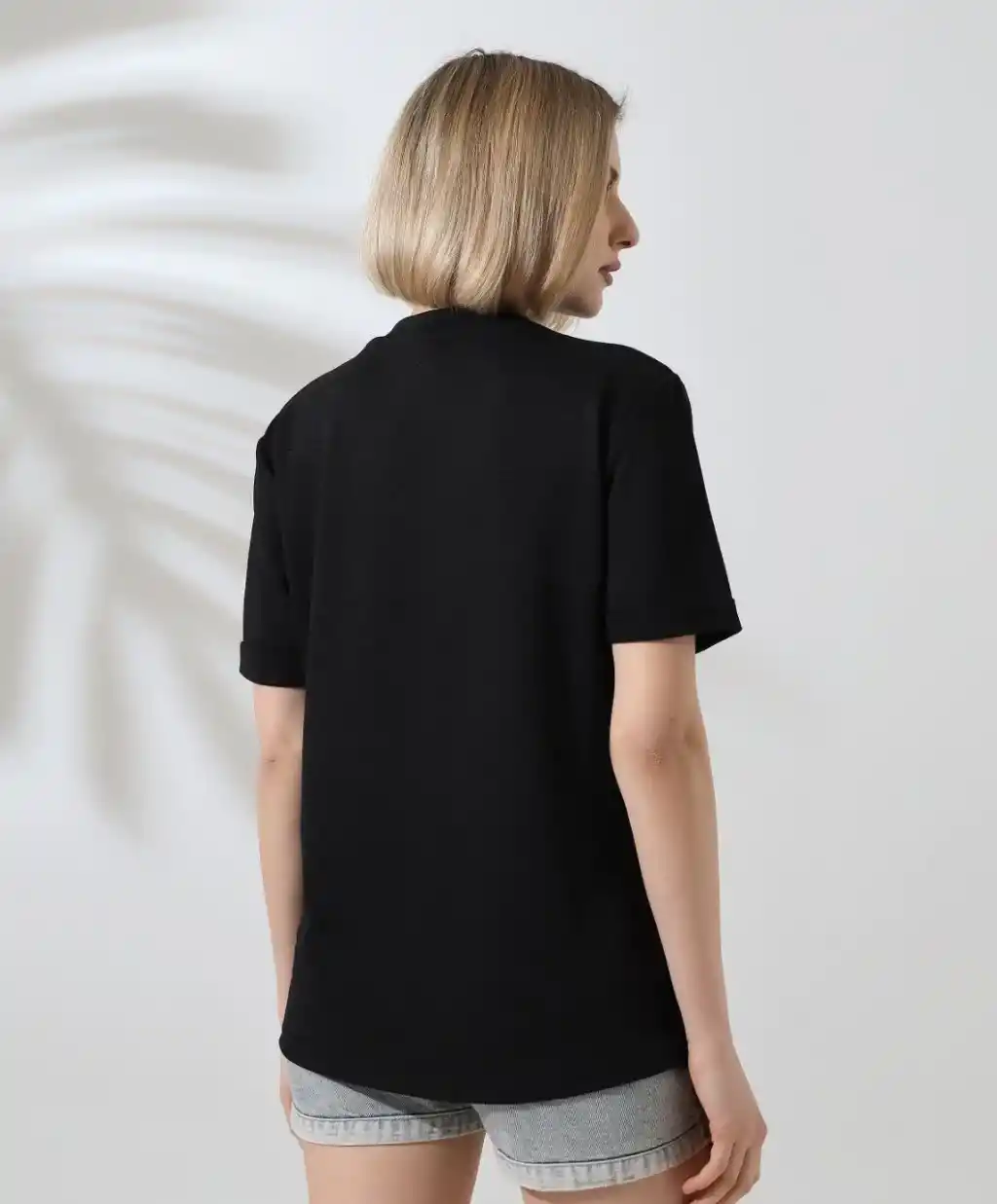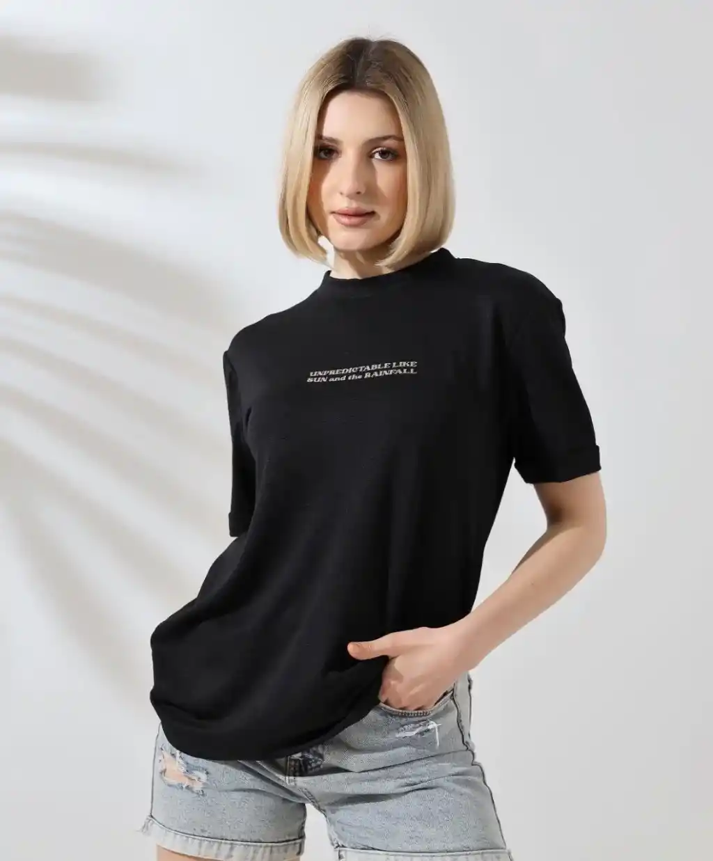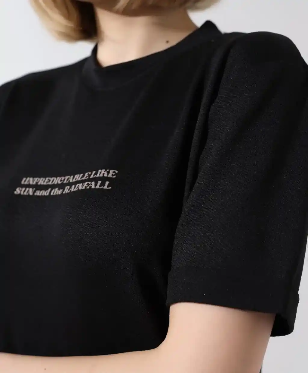 Unisex Bisiklet Yaka Baskılı Slim Fit T-Shirt - Siyah
