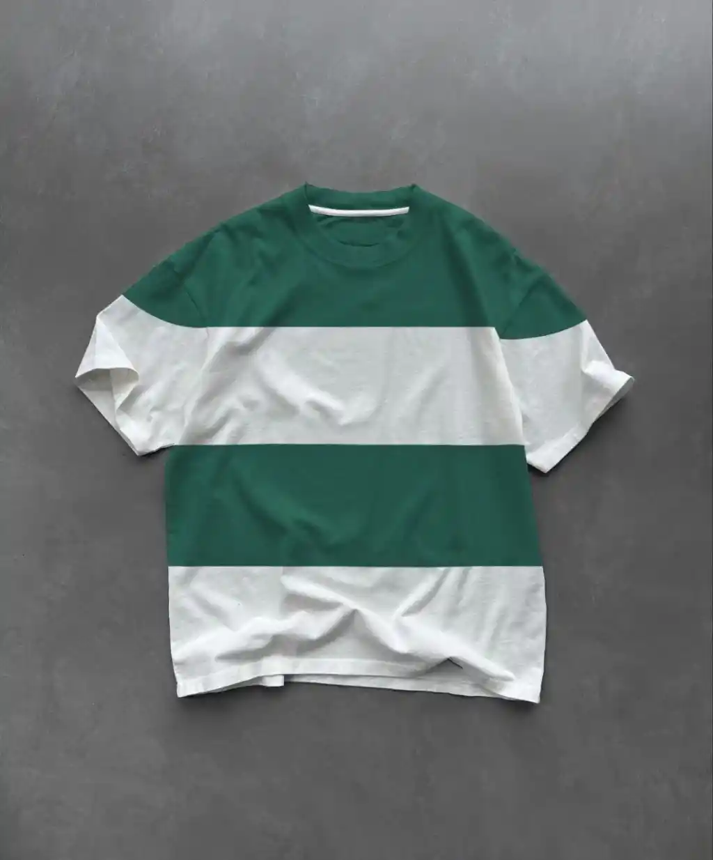 Unisex Bisiklet Yaka Parçalı T-Shirt - Yeşil