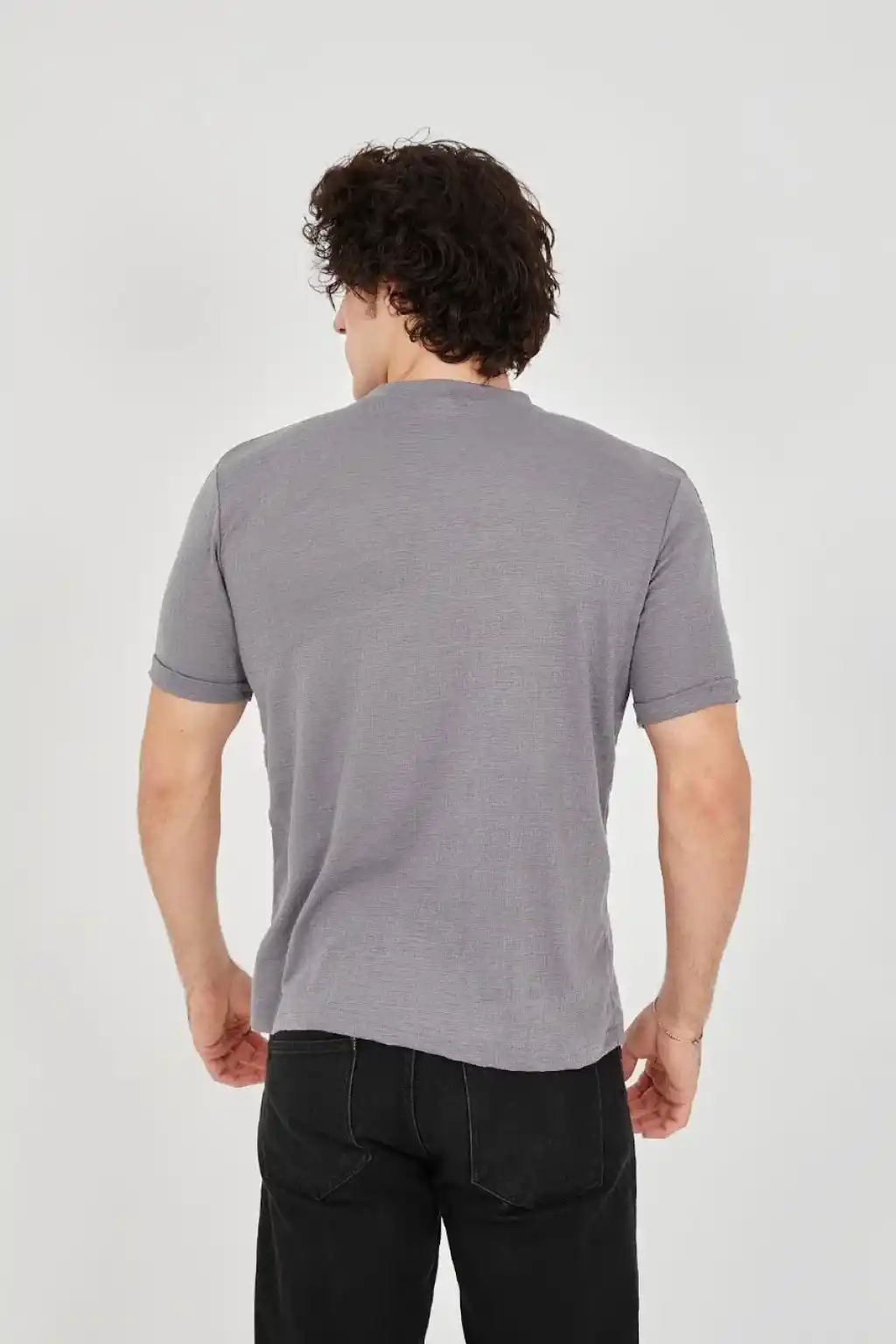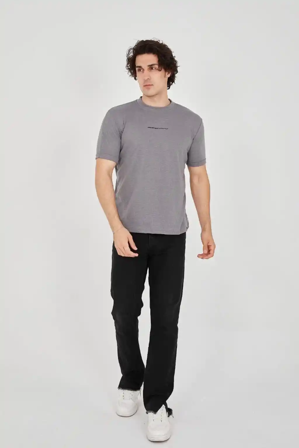 Unisex Jakar Kumaş Slim Fit T-Shirt - Boyalı Gri