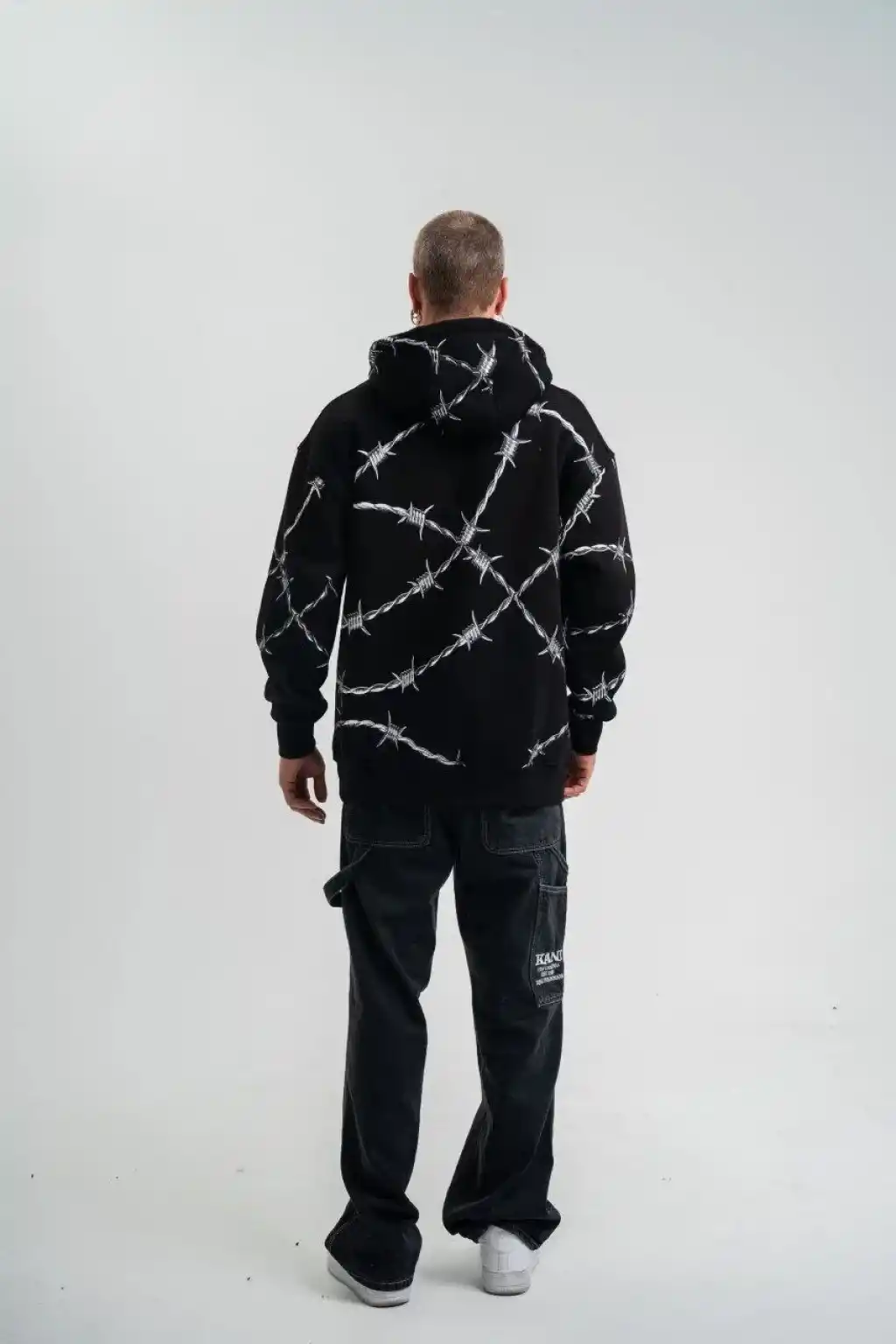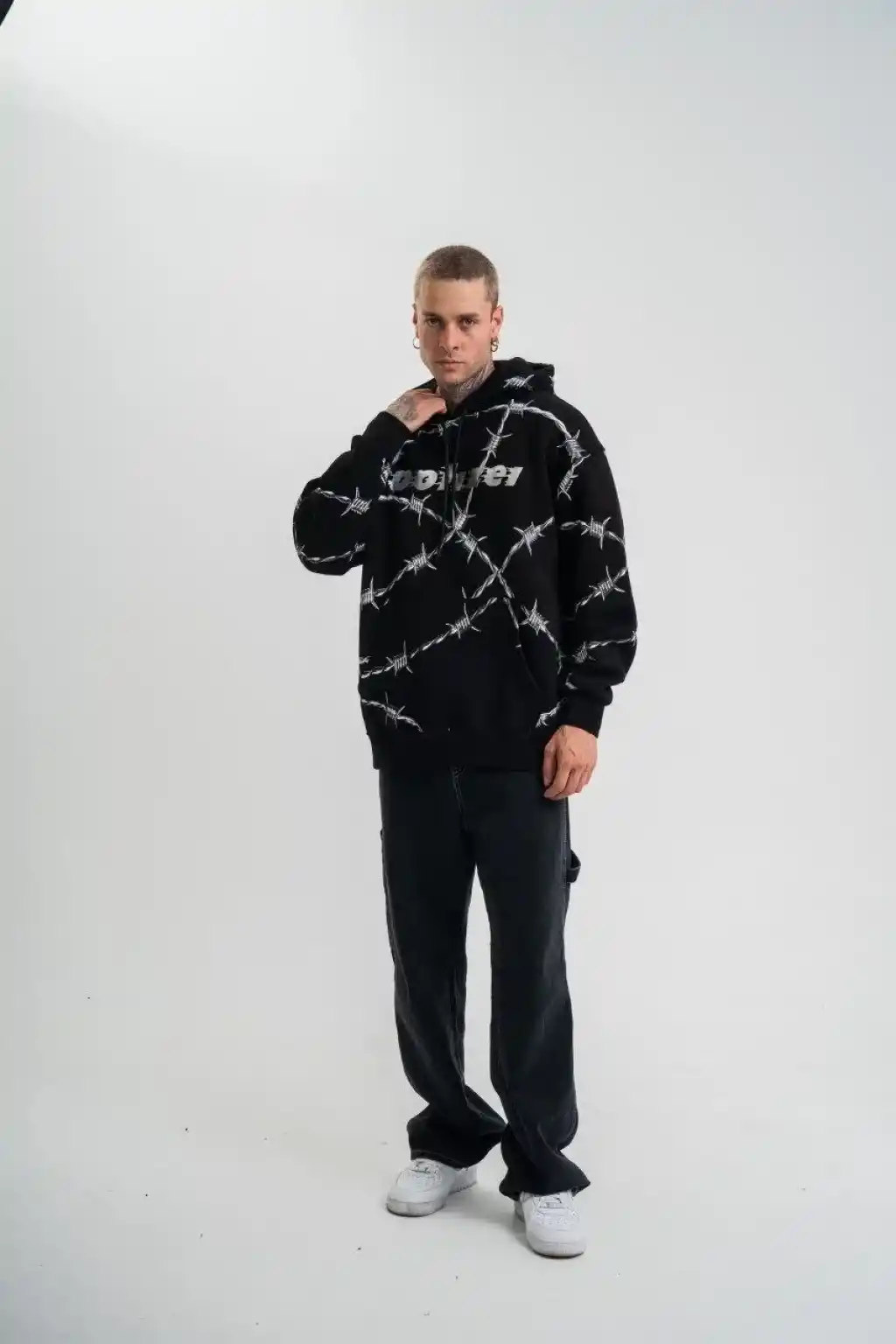 Unisex Kapşonlu Varak ve Pano Baskılı SweatShirt- Siyah