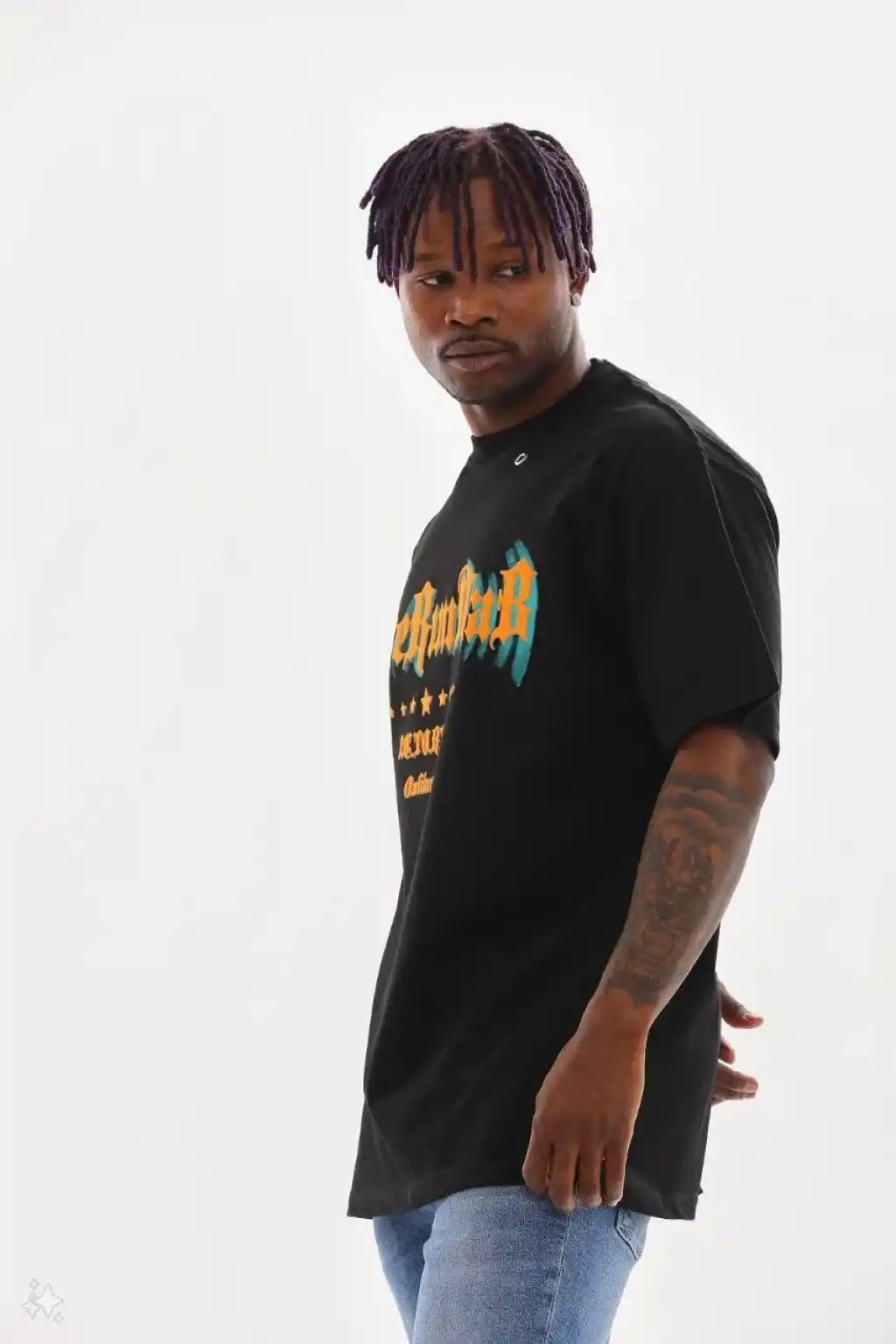 Unisex Kuşgözü Detaylı Baskılı Oversize T-Shirt - Siyah