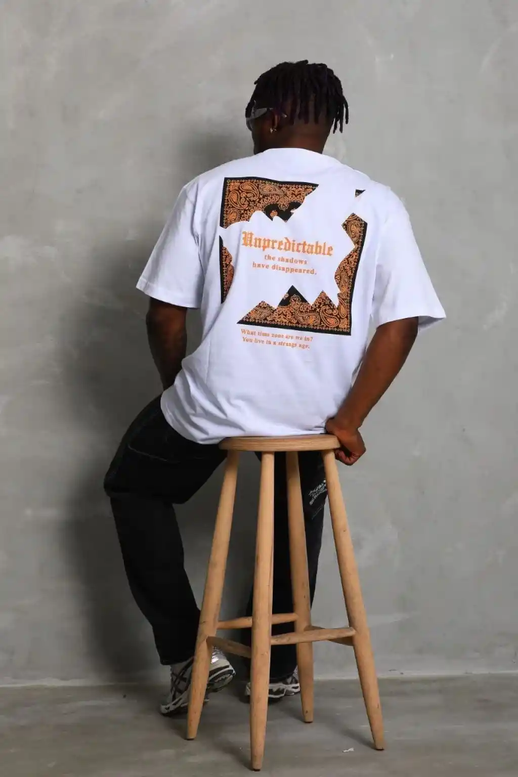 Unisex Oversize Baskılı Bisiklet Yaka T-Shirt - Beyaz