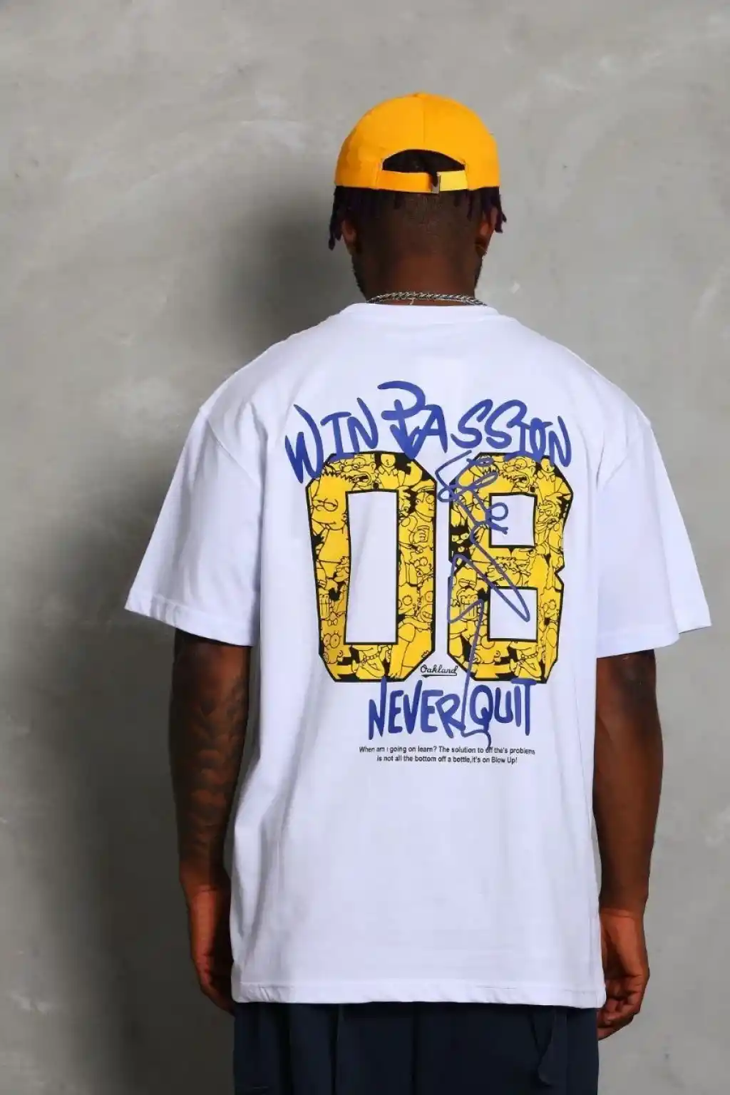 Unisex Oversize Baskılı Bisiklet Yaka T-Shirt - Beyaz