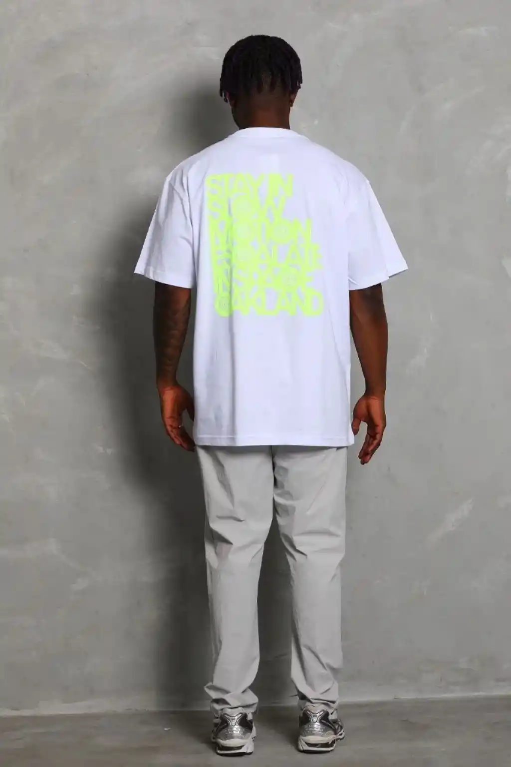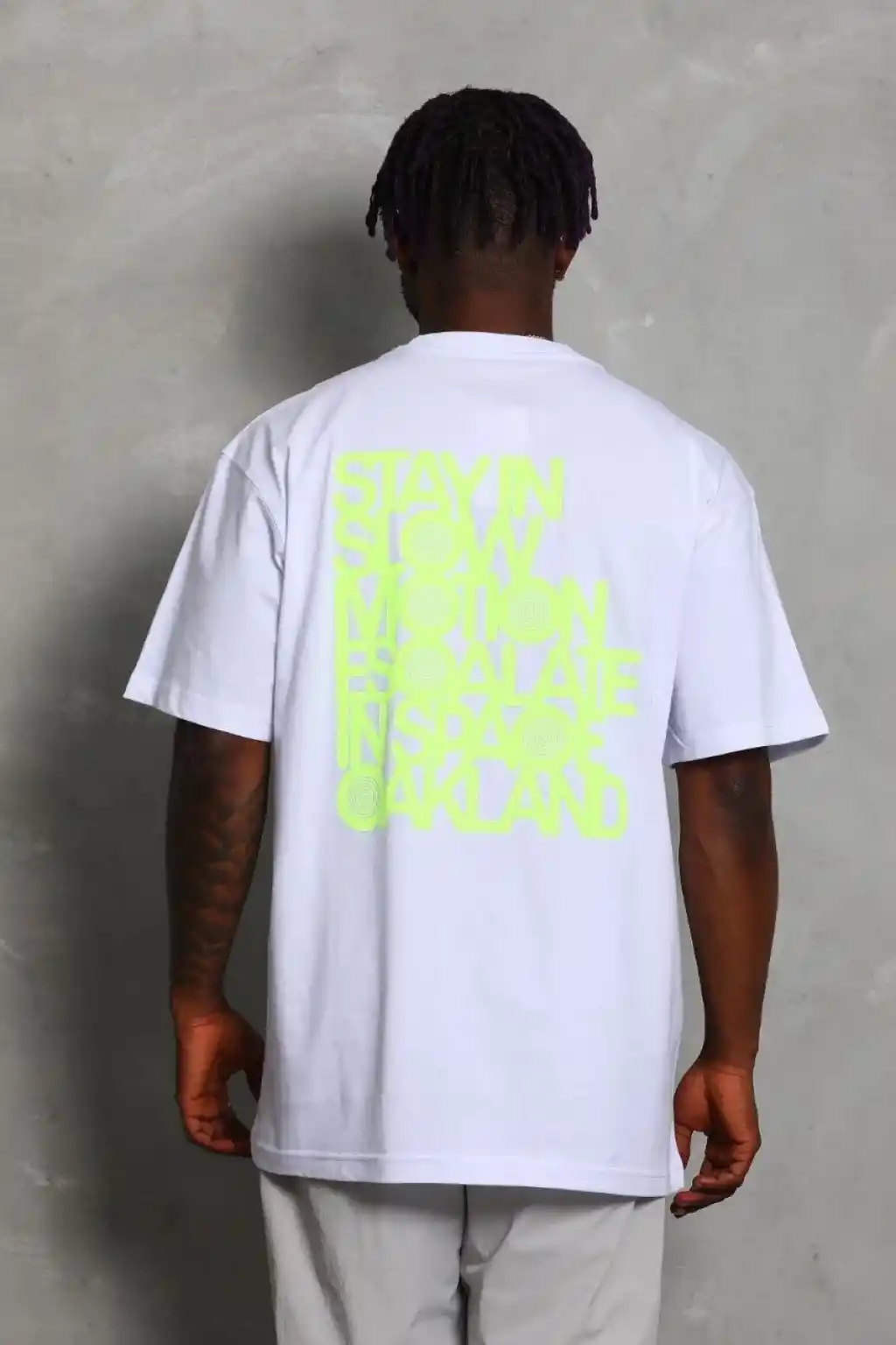 Unisex Oversize Baskılı Bisiklet Yaka T-Shirt - Beyaz