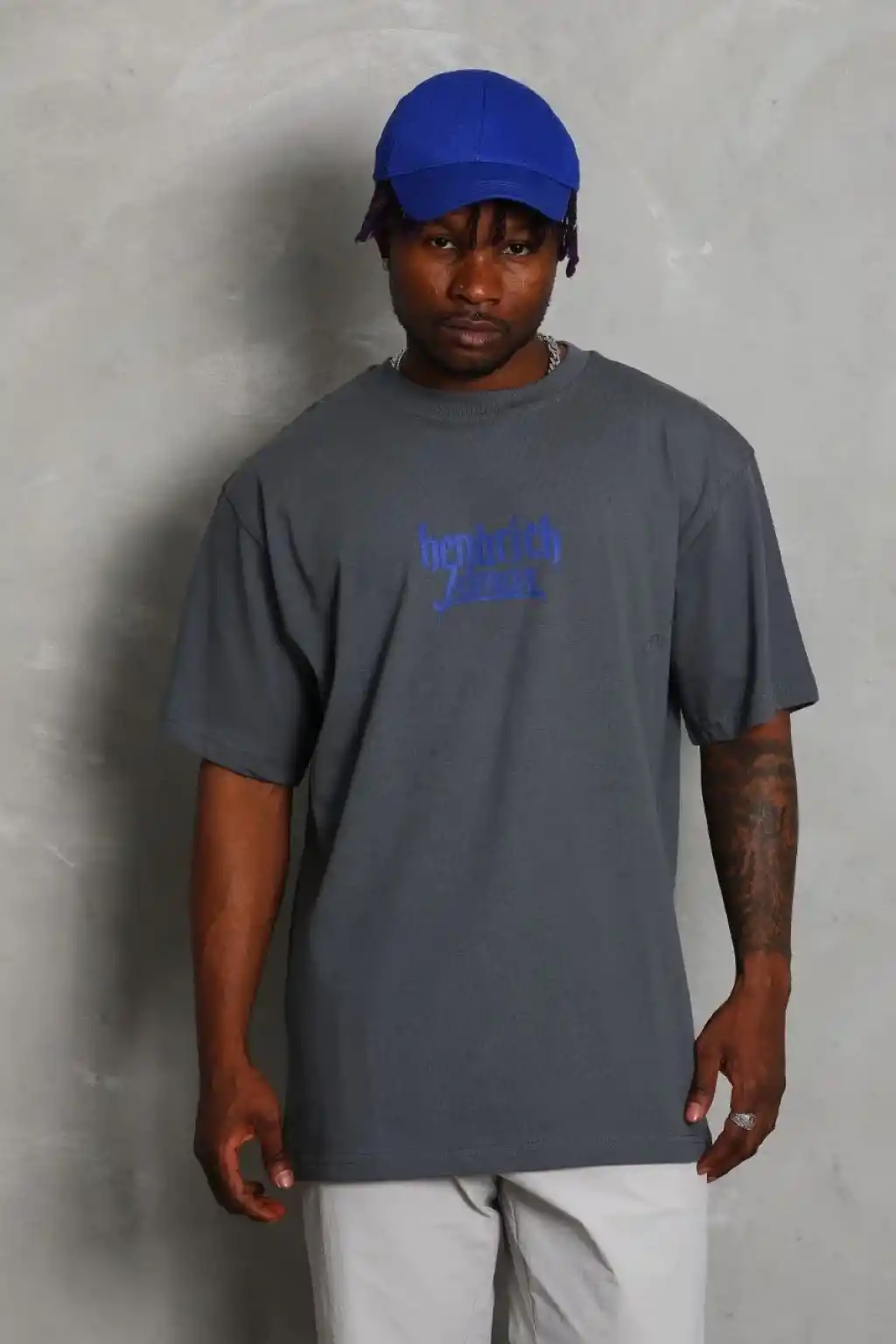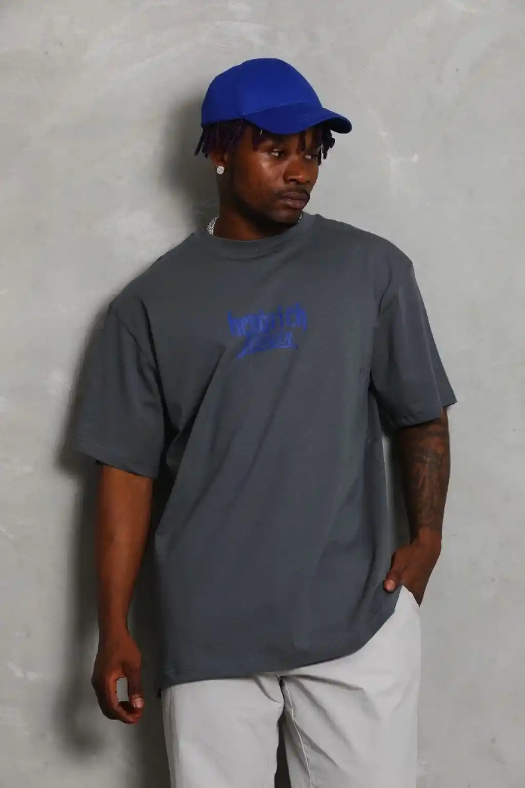 Unisex Oversize Baskılı Bisiklet Yaka T-Shirt - Füme