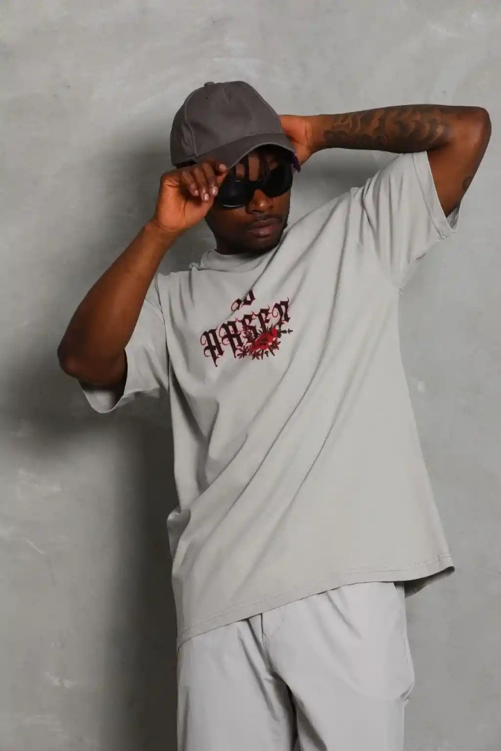Unisex Oversize Baskılı Bisiklet Yaka T-Shirt - Gri