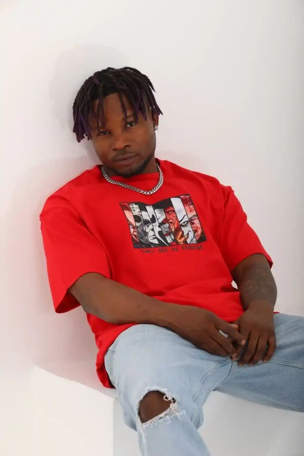 Unisex Oversize Baskılı Bisiklet Yaka T-Shirt - Kırmızı