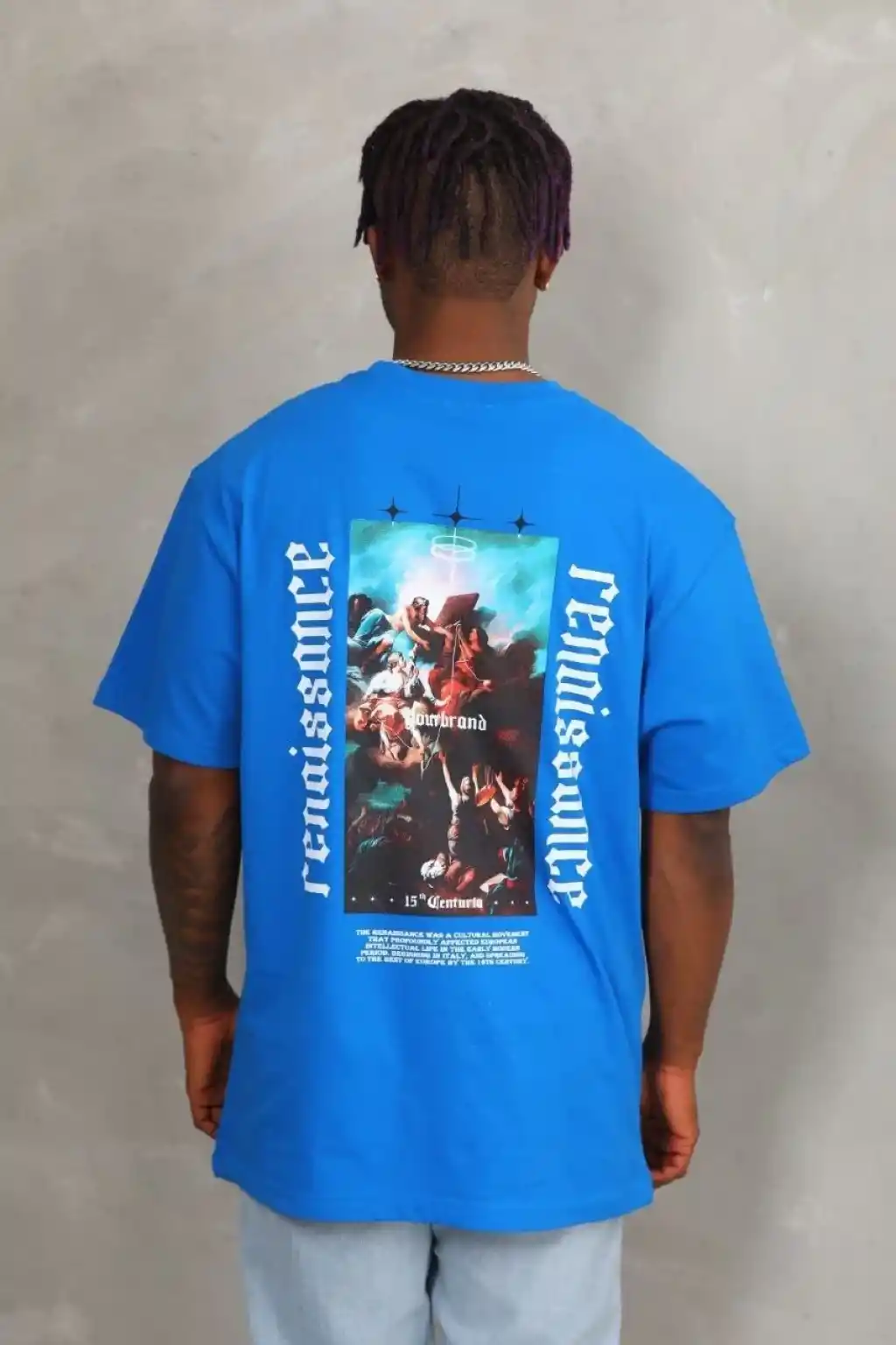 Unisex Oversize Baskılı Bisiklet Yaka T-Shirt - Mavi