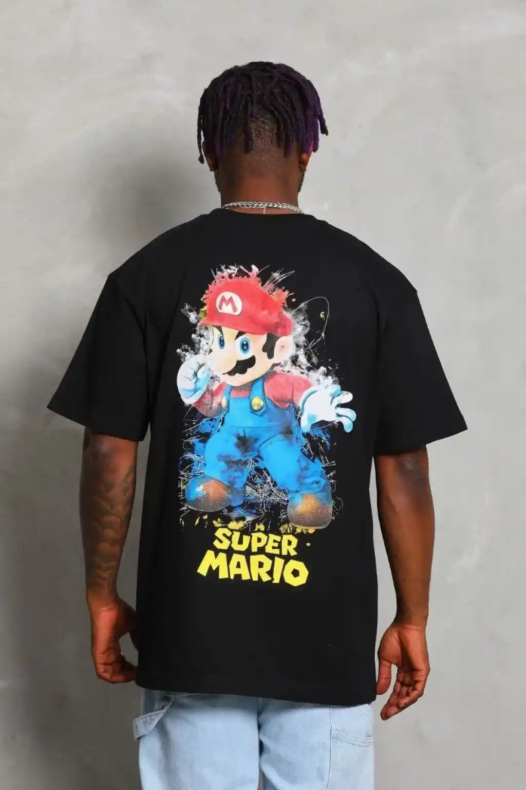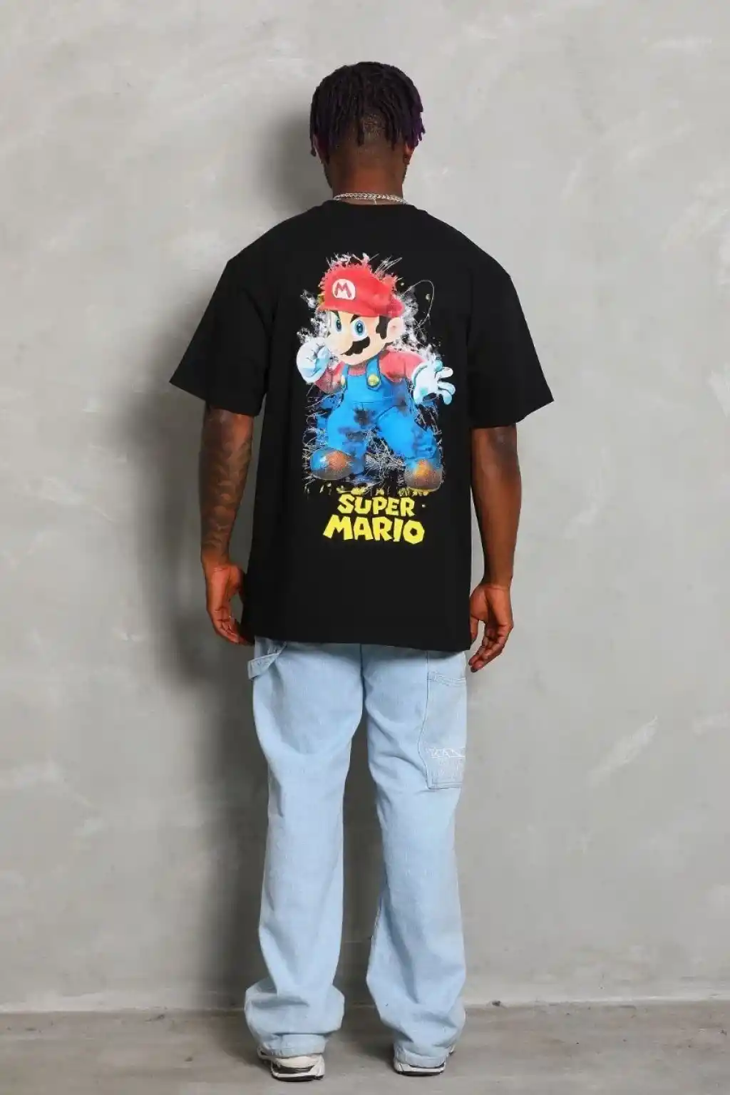 Benzersiz Sırt Baskılı Erkek Sokak Stili Bol Tişört - Nefes Alabilir Polyester, Makinede Yıkanabilir - Siyah