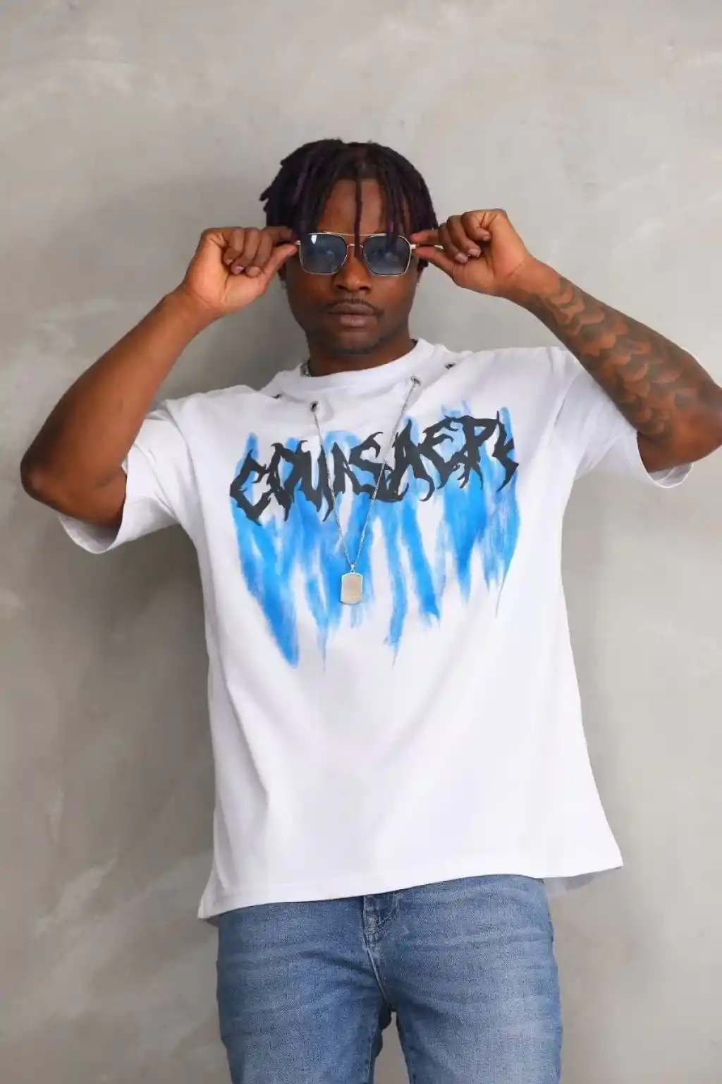 Unisex Oversize Kolye Dahil T-Shirt - Beyaz