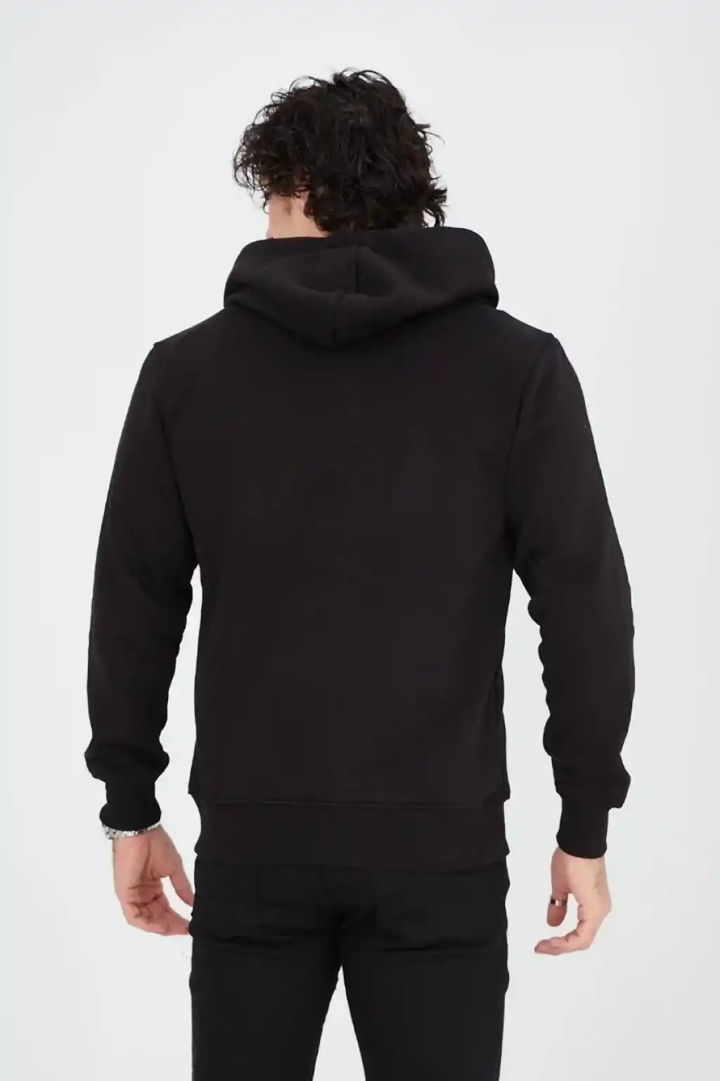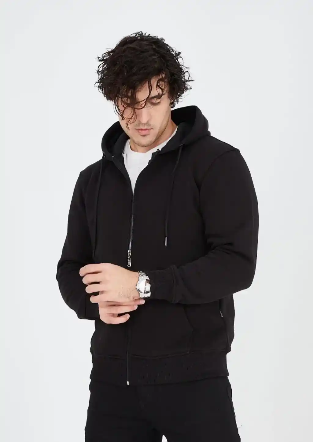 Unisex Tam Fermuarlı Kapşonlu  SweatShirt - Siyah