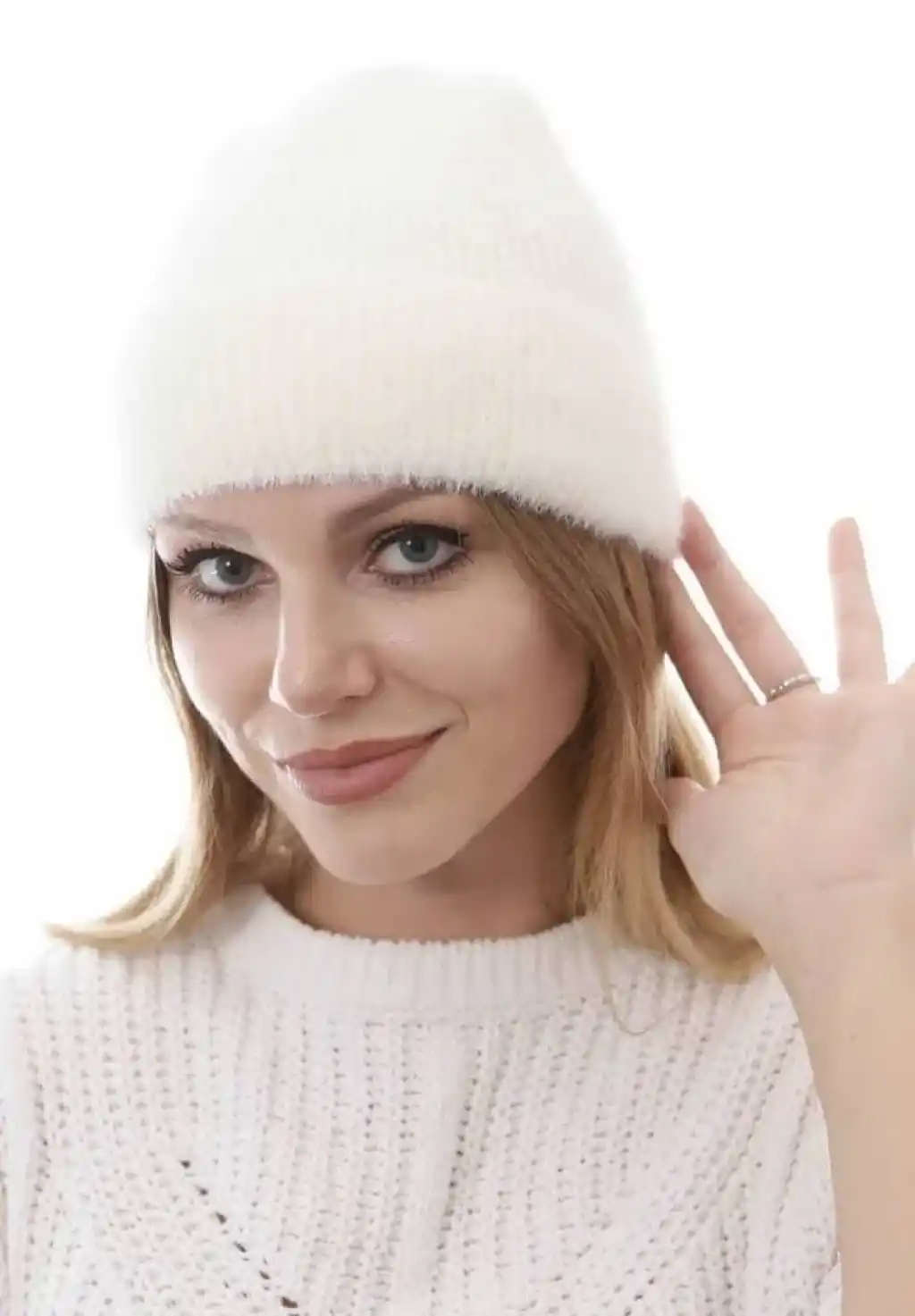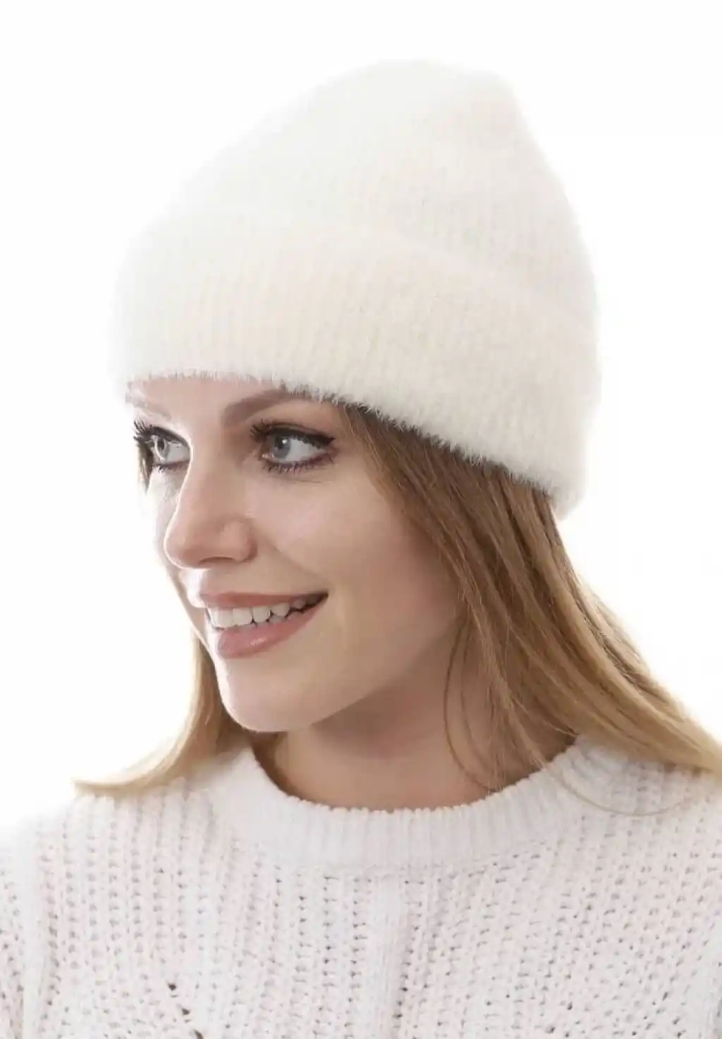 Unisex Tam Kalıp İnce Sakallı Triko Bere - Beyaz