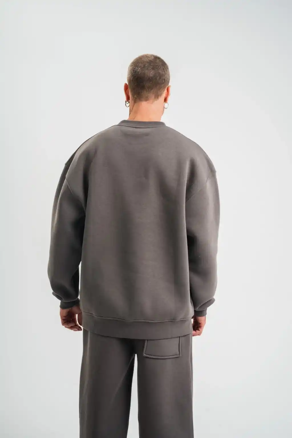 Uzun Kol Bisiklet Yaka Basic SweatShirt - Füme