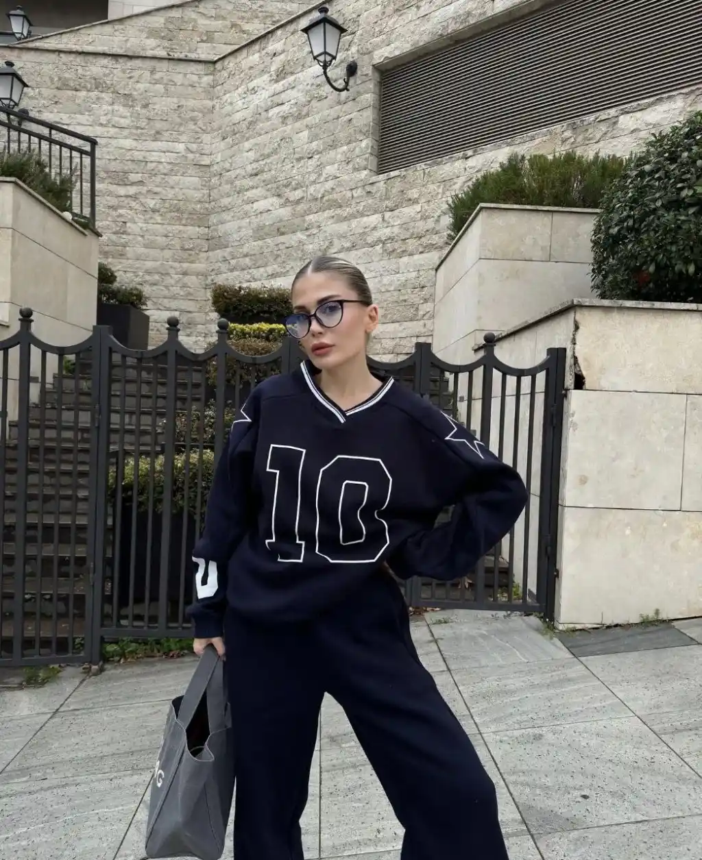 ÜST DetayV Yakalı Yakası Dokuma Şeritli