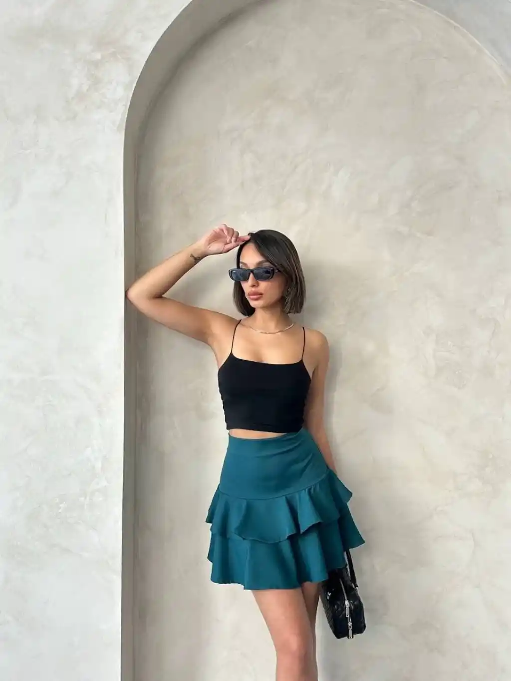 Bu şık ve göz alıcı yeşil eteği günlük şıklığınızda veya özel günlerde tercih edebilir, tarzınıza şıklık katabilirsiniz.