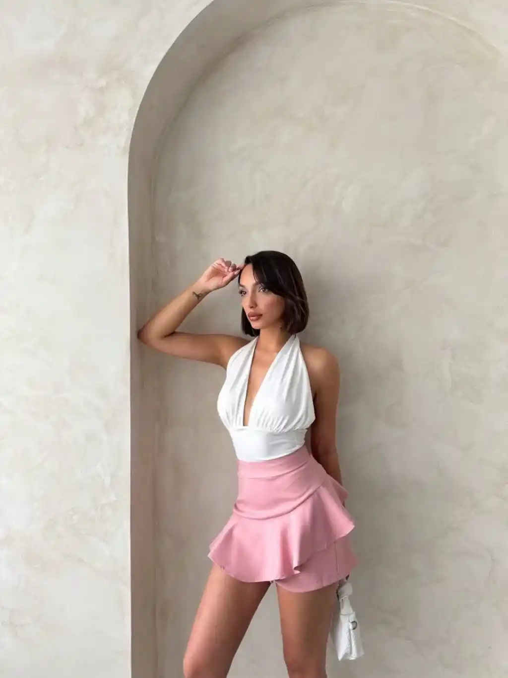 Valonlu Fırfırlı Şort, yaz aylarının vazgeçilmez parçası olmaya aday! Şık tasarımı ve rahat kesimi ile hem günlük kullanıma hem de özel günlerde tercih edebileceğiniz bir parça. İncecik bel bandı ve bel kısmındaki fırfır detayıyla feminen bir hava katarken, pamuklu kumaşıyla da gün boyu konfor sunuyor.