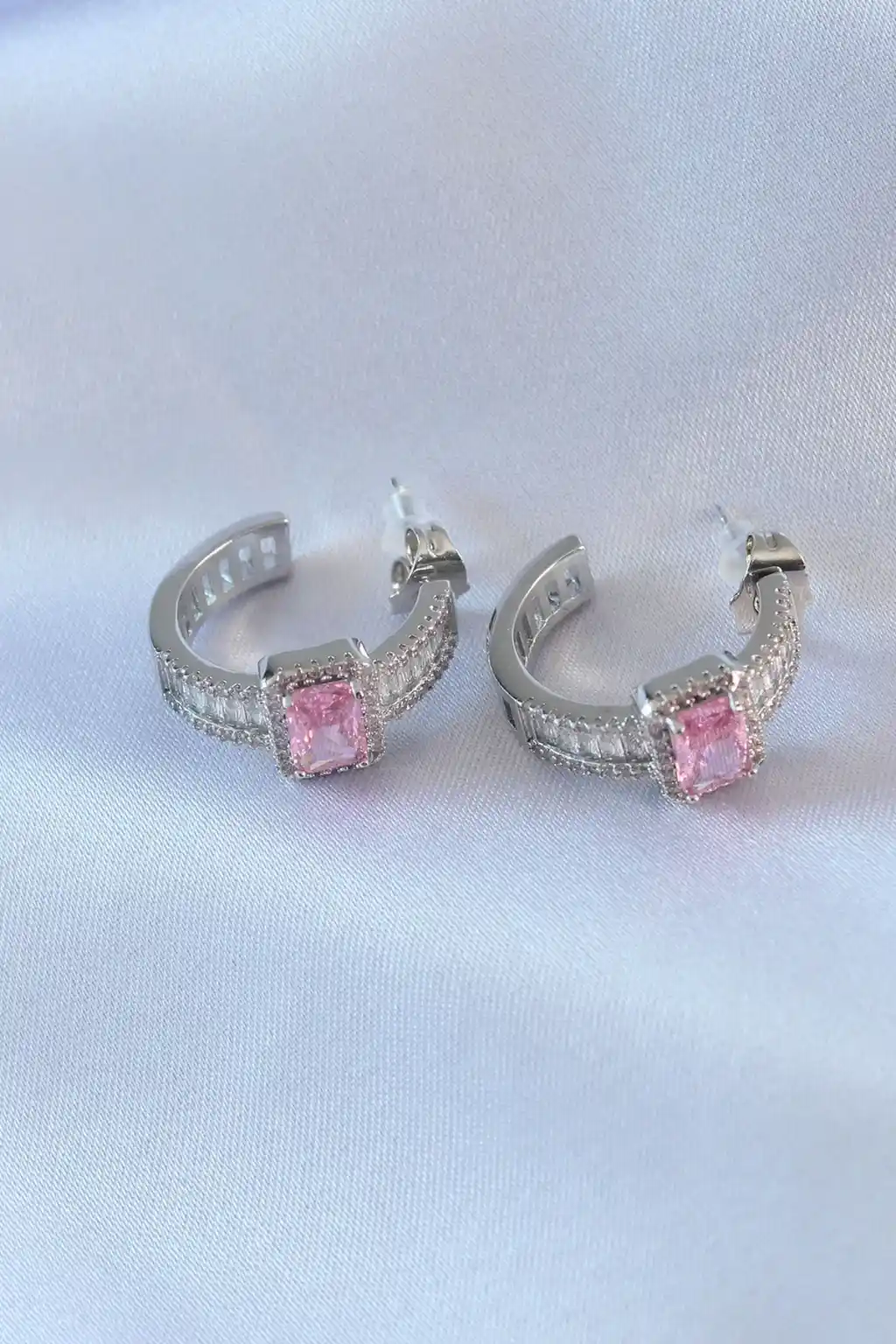 VIP Seri Gümüş Renk Yarım Halka Model Zirkon Taşlı Pirinç Kadın Küpe