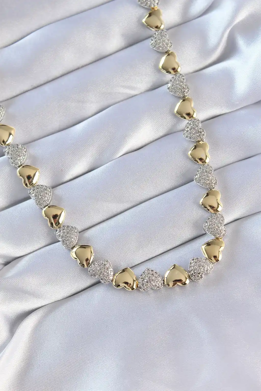 Vip Seri Pirinç Çift Renk Zirkon Taşlı Kalp Tasarımlı Kolye