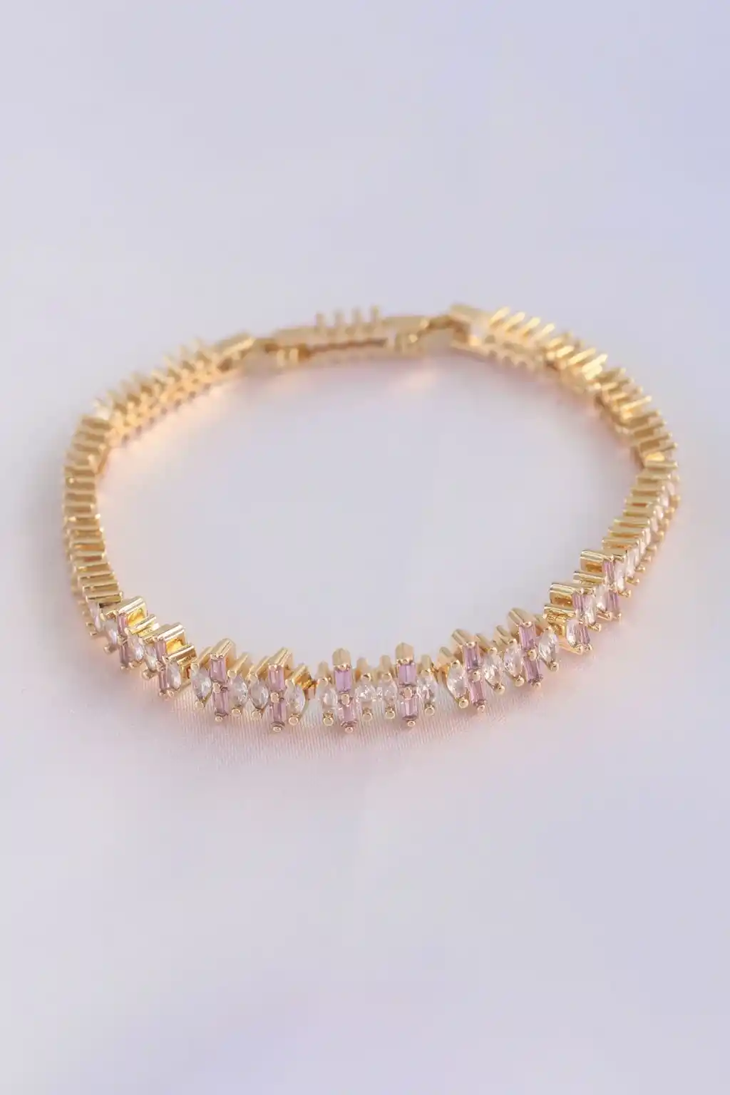 Vip Seri Pirinç Pembe Zirkon Taşlı Gold Renk Baget Model Bileklik