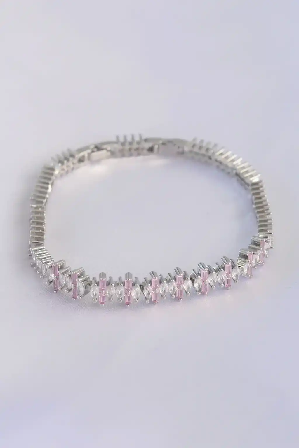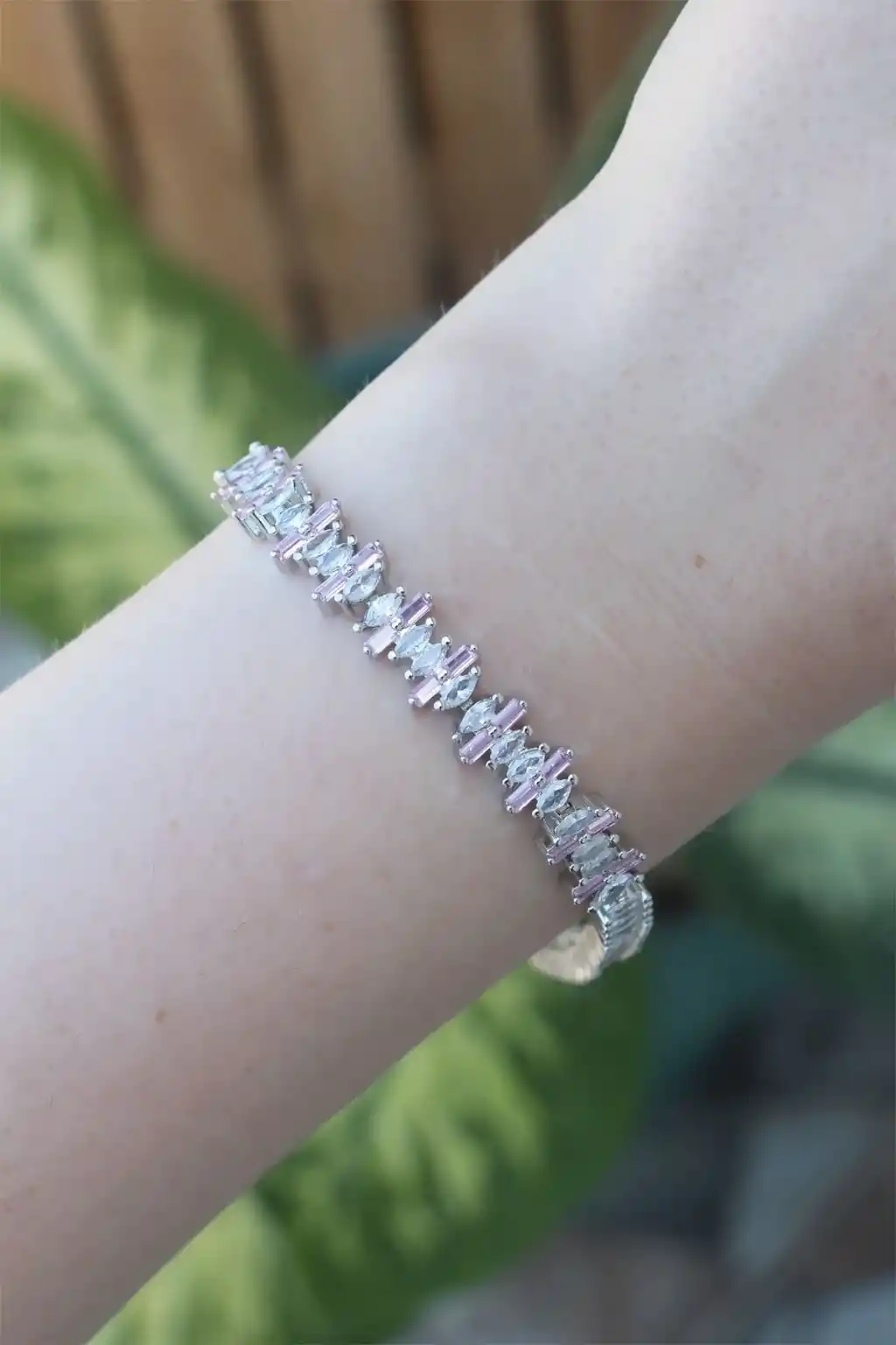 Vip Seri Pirinç Pembe Zirkon Taşlı Gümüş Renk Baget Model Bileklik