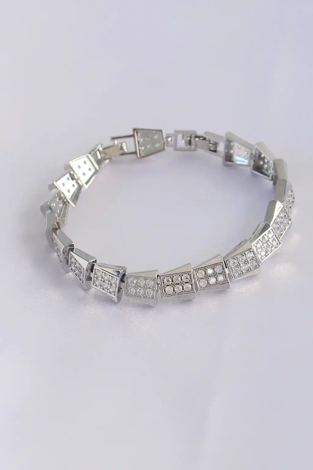Vip Seri Pirinç Zirkon Taşlı Gümüş Renk Geometrik Bileklik