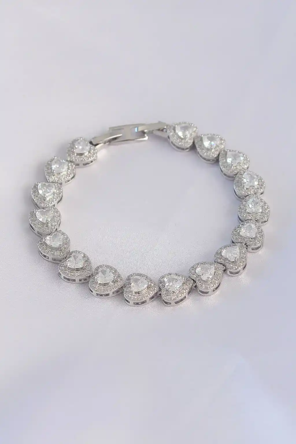 Vip Seri Pirinç Zirkon Taşlı Gümüş Renk Kalp Model Bileklik