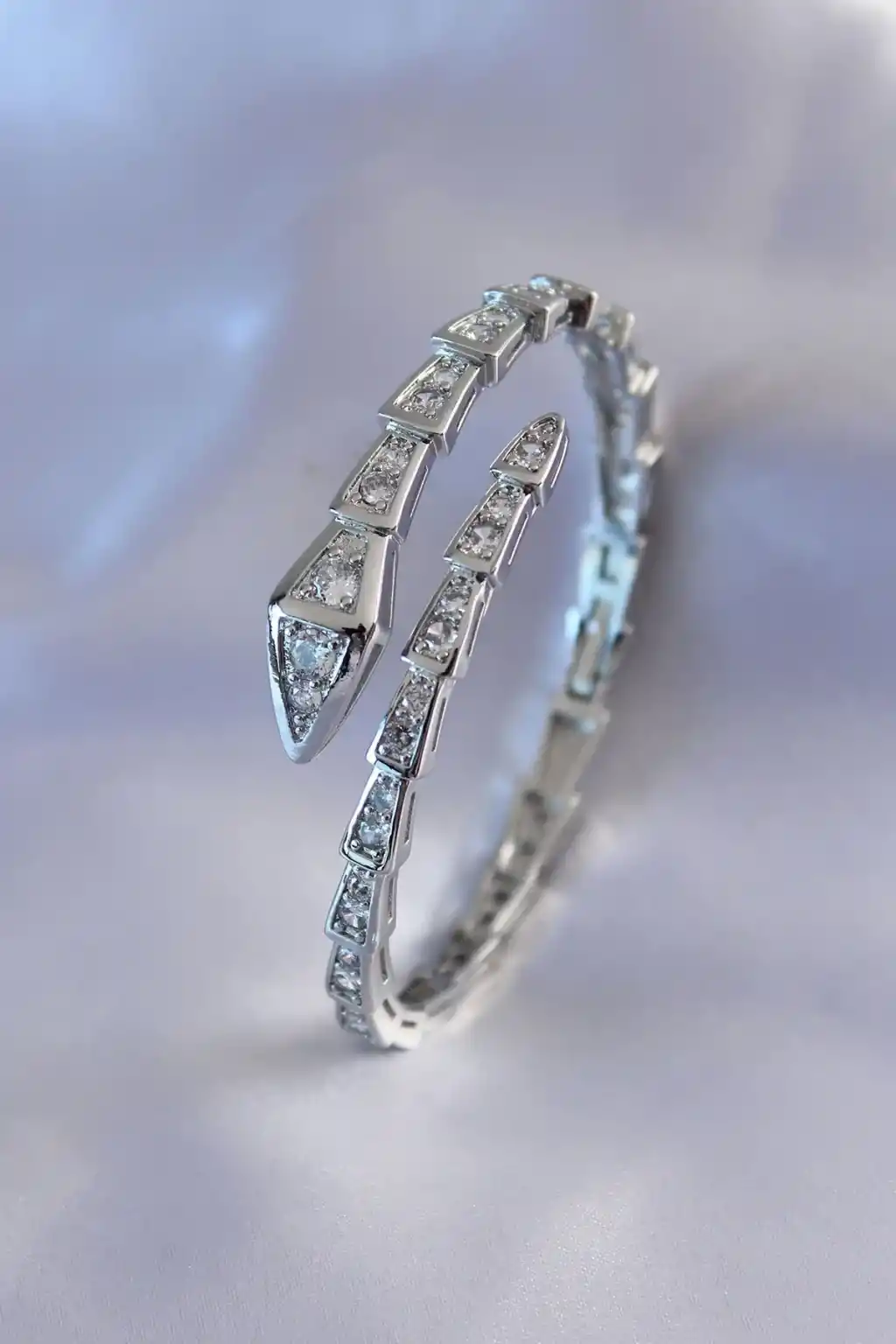 VIP Seri Yılan Model Gümüş Renk Kadın Kelepçe Bileklik