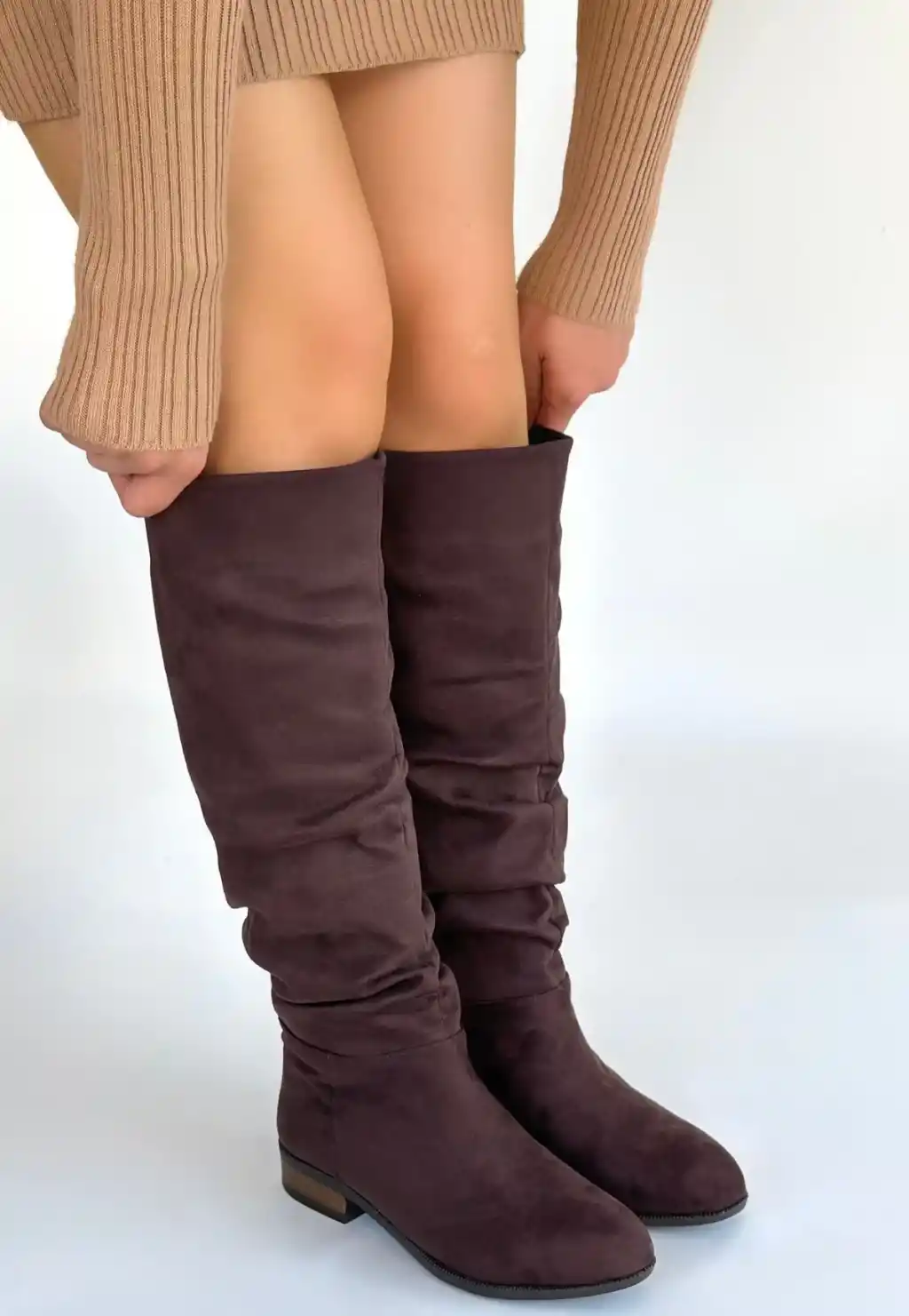 Canty Kahverengi Süet Körüklü Topuklu Çizme