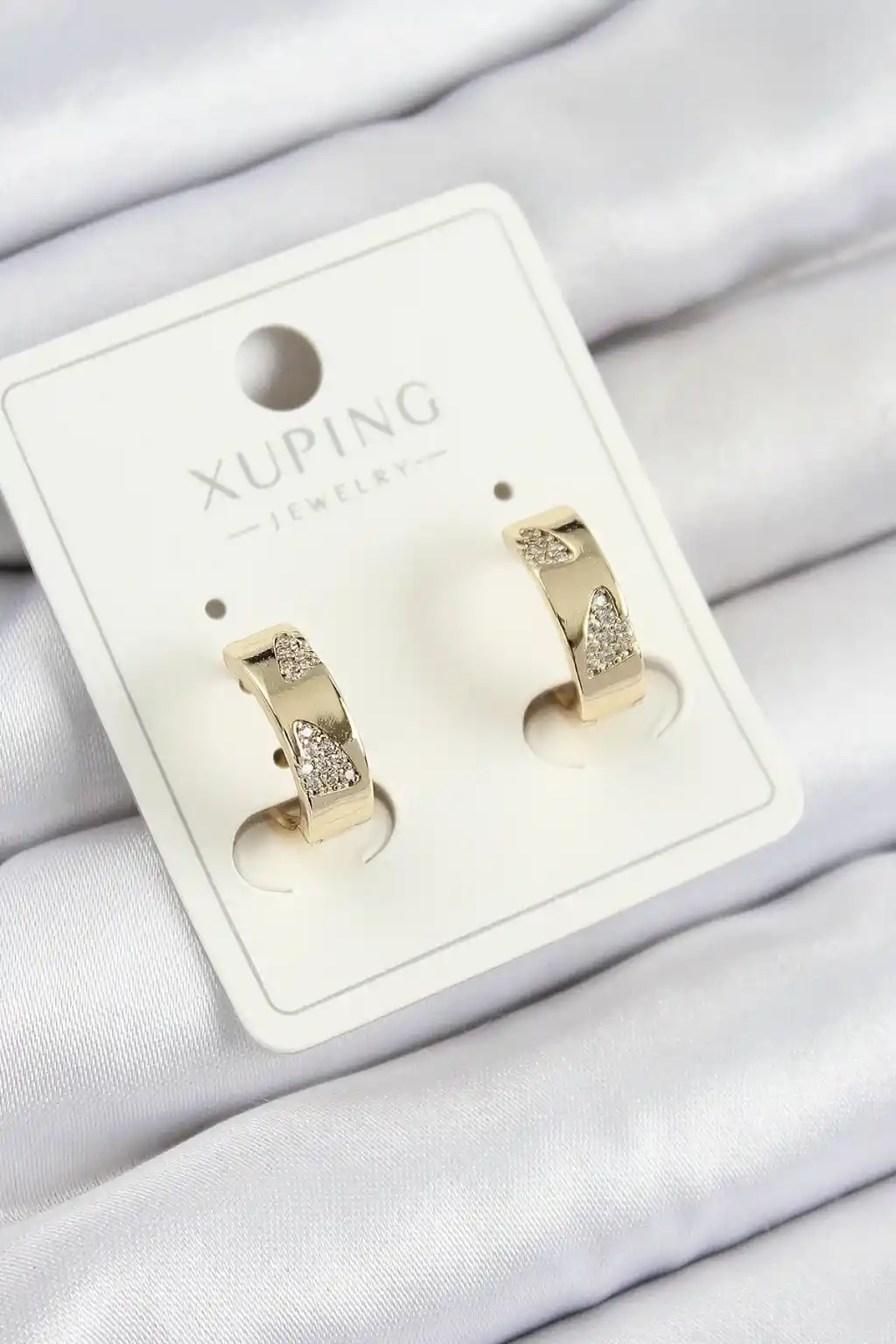 Xuping Zirkon Taşlı Desenli Halka Model Gold Renk Kadın Küpe