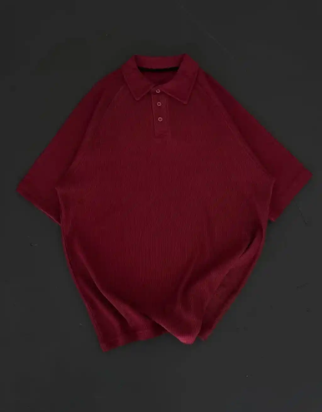 Yakalı Patlı Kısa Kol T-shirt - Bordo
