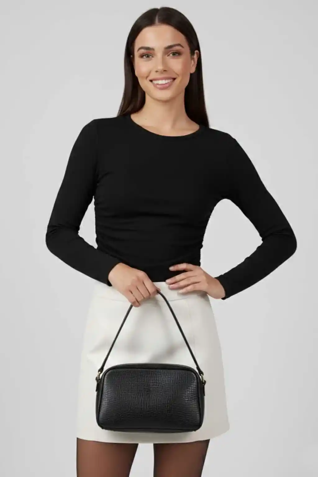 Yanı Büzgülü bluz siyah, şıklığı ve rahatlığı bir arada sunar. Bu bluzla hem günlük hayatta hem de özel davetlerde şık bir görünüme sahip olabilirsiniz.