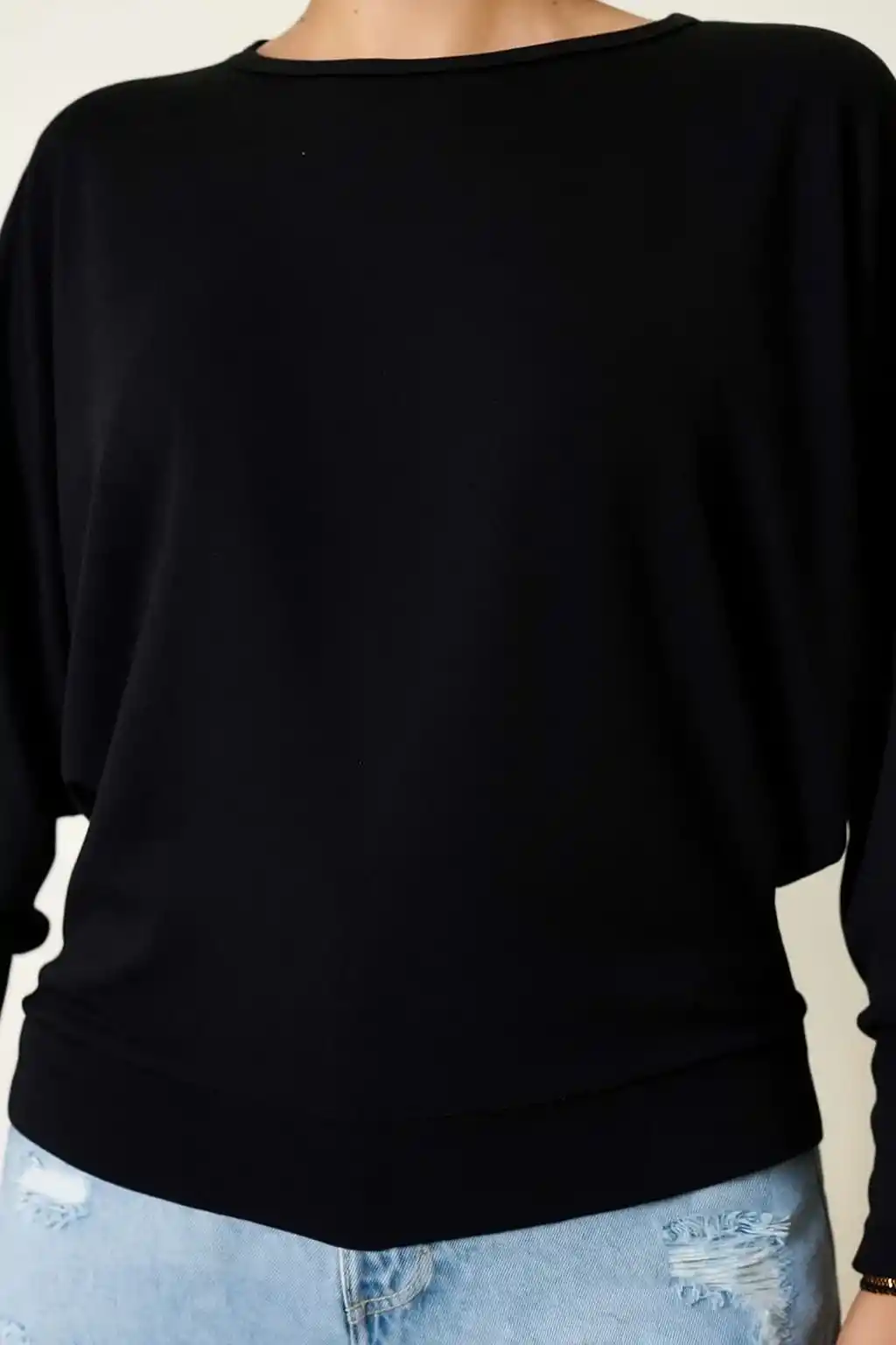 Yarasa Kol Salaş Bluz siyah T4273, günlük şıklığınızı tamamlarken kendinizi rahat hissetmenizi sağlar.