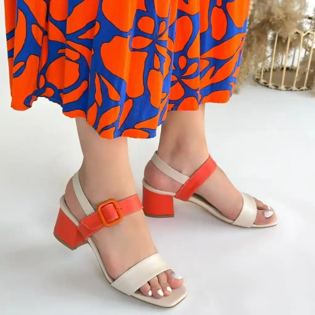Year Bej Cilt Turuncu Detaylı Turuncu Topuklu Topuklu Ayakkabı
