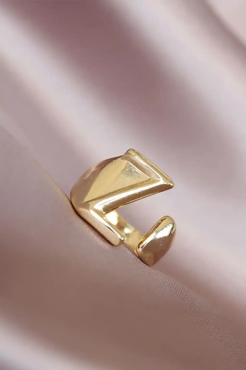 Z Harfli Altın Renk Ayarlamalı Metal Kadın Yüzük