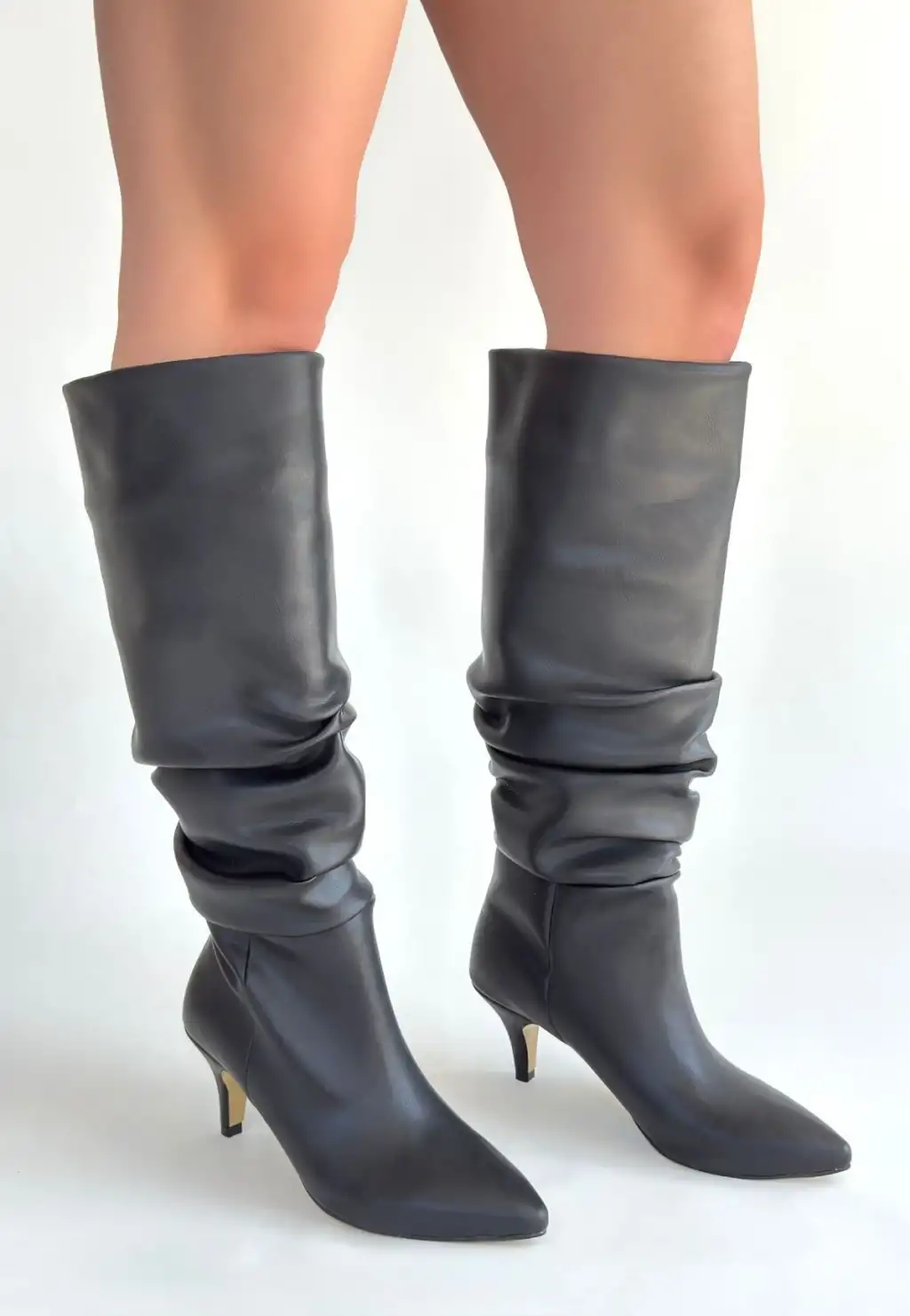 Detay : Topuklu Diz Altı Körüklü Çizme